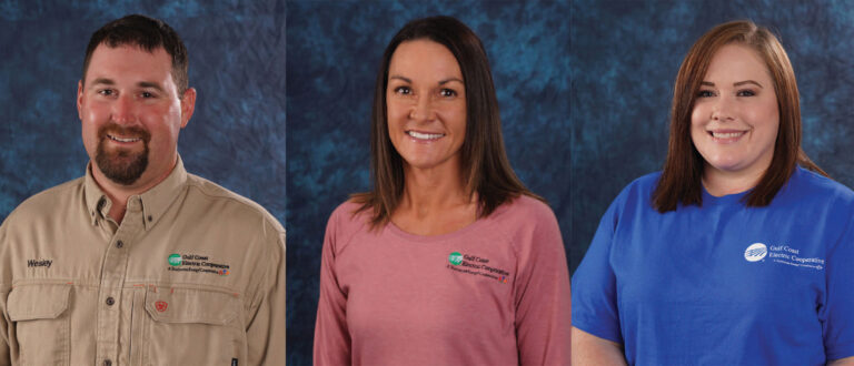 Gulf Coast Electric Cooperative is pleased to announce the promotions of Wesley Newsome to supervisor of warehouses, Melissa Rushing to accounts payable specialist, and Kristen Rich to accounts payable clerk. Congratulations!