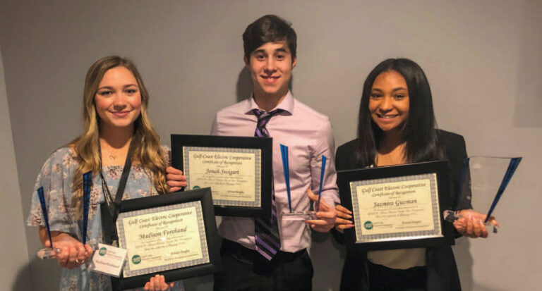 Jazmira Guzman and Jonah Swigart will represent Gulf Coast Electric Cooperative in Washington, D.C., at June’s annual Rural Electric Youth Tour. The two were selected in the cooperative’s recent competition. Madison Forehand is the alternate. The co-op sponsors the contest…