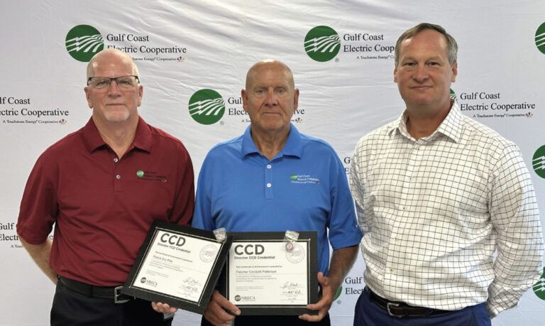 2 Gulf Coast Electric Cooperative (GCEC) trustees recently attained Credentialed Cooperative Director certifications. District II, Group 2 Trustee Pat Patterson and District I, Group 3 Trustee Pat Pitts earned their new credentials through the National Rural Electric Cooperative Association’s program.…