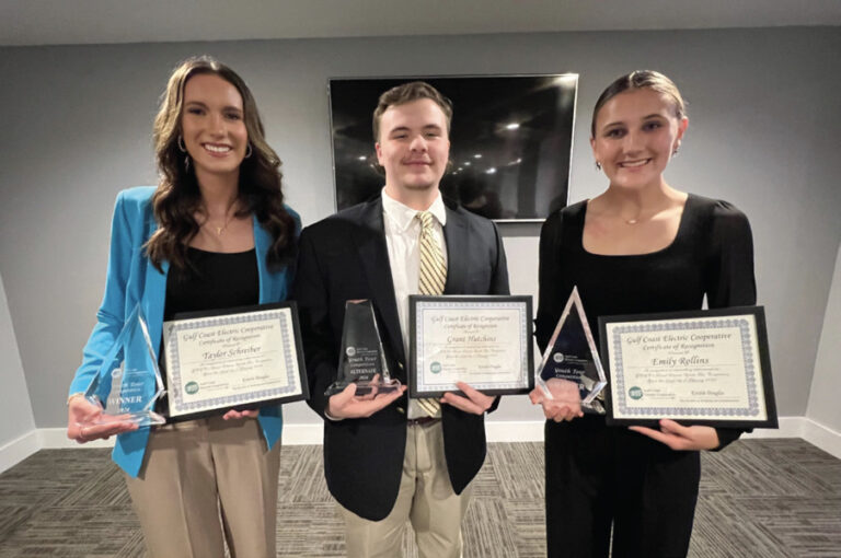 Emily Rollins and Taylor Schreiber will represent Gulf Coast Electric Cooperative (GCEC) in Washington, D.C., at June’s annual Rural Electric Youth Tour. The 2 were selected in the cooperative’s recent competition. Grant Hutchins is the alternate. The co-op sponsors the…